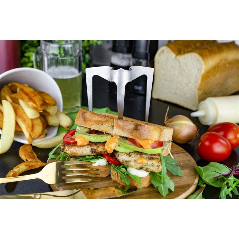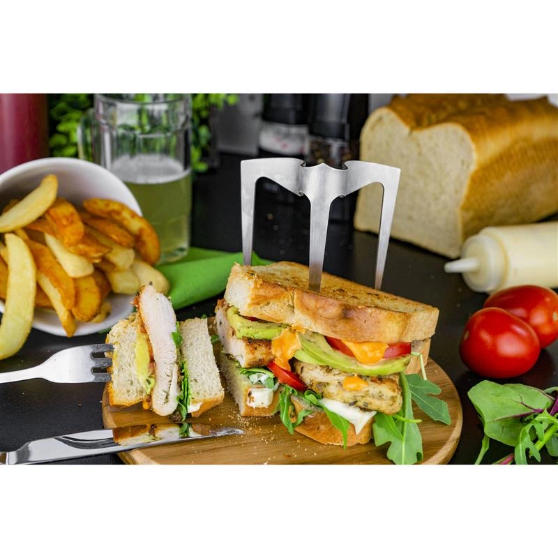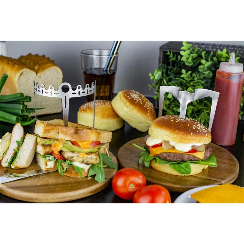 Zestaw do serwowania hamburgerów: deska i szpikulec.