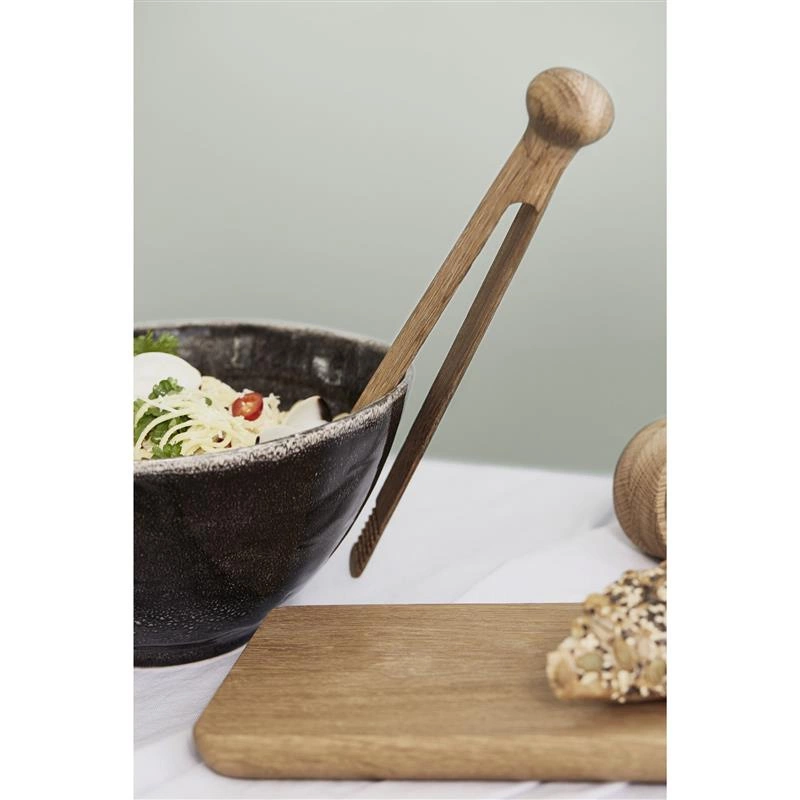 Dębowe szczypce do serwowania sałaty.