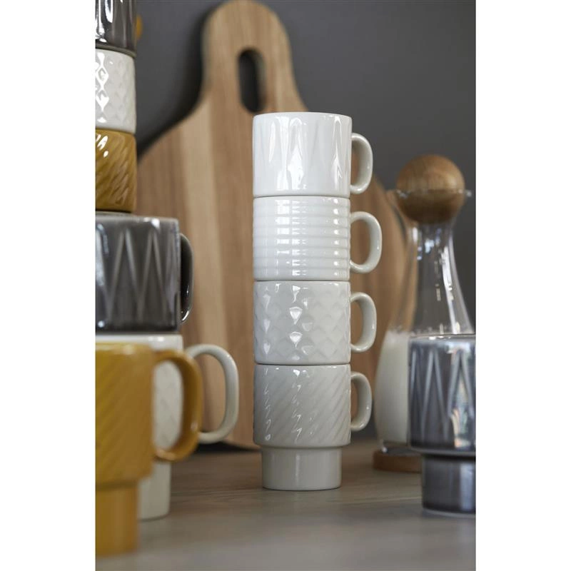 - każda filiżanka ozdobiona jest innym wypukłym wzorem w stylu lat 70.