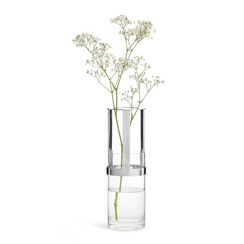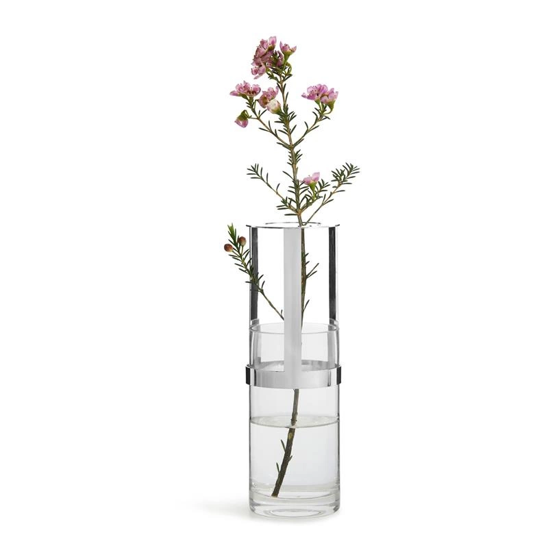 Sagaform - wazon, śred. 8 x 15 cm, szkło/metal, srebrny, pudełko prezentowe Interior