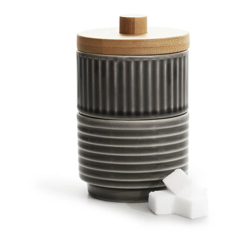 Sagaform - 2 mieseczki do serwowania/cukiernica z pokrywką, szare, ceramika/bambus, śred. 8 x 13 cm Coffee & More