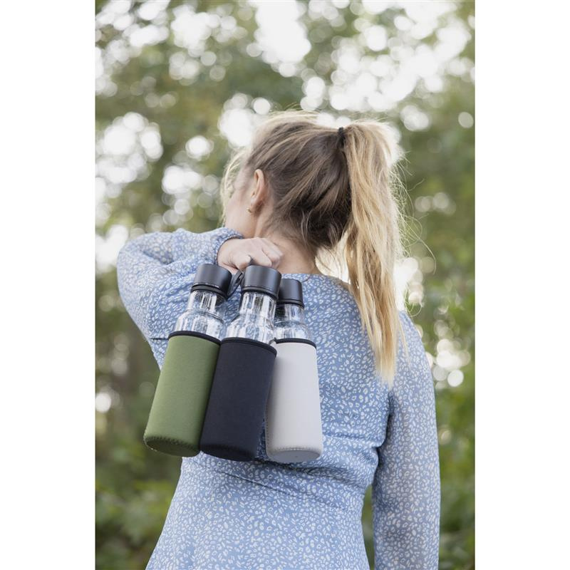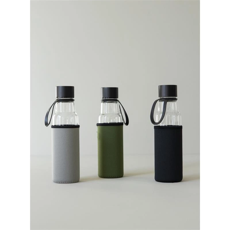 Sagaform - butelka na wodę, zielony pokrowiec, 0,6 l, śred. 7 x 26 cm, szkło borokrzemowe/neopren To Go