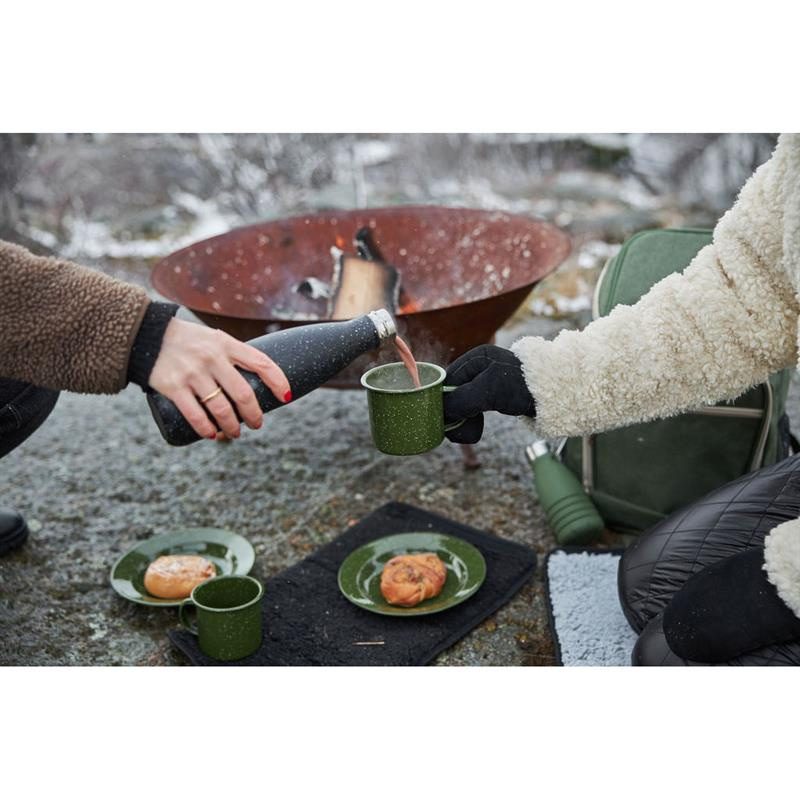 - wykonanie z metalu pokrytego emalią z nakrapianym wzorem czyni talerz idealnym wyborem dla wielbicieli stylu retro