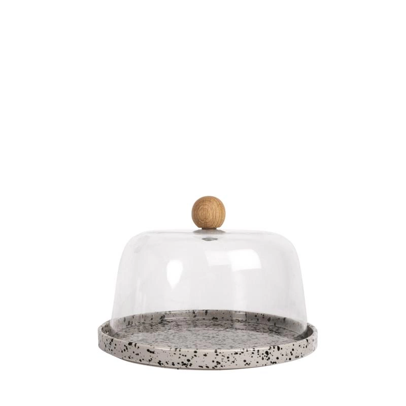 Sagaform - talerz do sera z kloszem, kamionka/akryl/drewno dębowe, śred. 19,5 x 13 cm Ditte