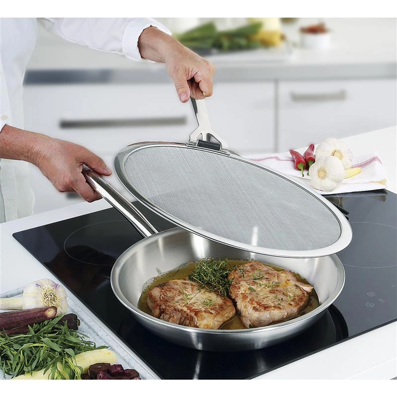 Spring - pokrywa zapobiegająca pryskaniu, stal nierdzewna, śred. 33 cm VULCANO Spring - pokrywa zapobiegająca pryskaniu, stal nierdzewna, śred. 33 cm VULCANO Stalowa pokrywa z sitem zapobiegająca pryskaniu.