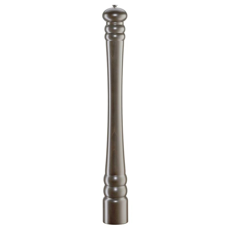 Wysoki młynek pieprzu wykonany z przyciemnianego drewna bukowego.