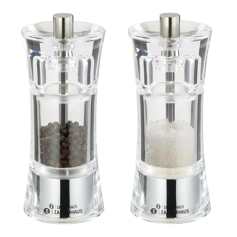 Zassenhaus - zestaw 2 młynków do soli i pieprzu, śred. 5,8x14 cm, akrylowe Aachen