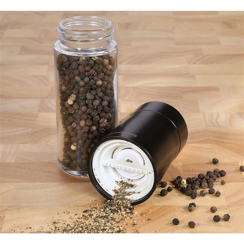 Zassenhaus - młynek do pieprzu, śred. 5,5 x 17 cm, stal nierdzewna/szkło, czarny Dessau
