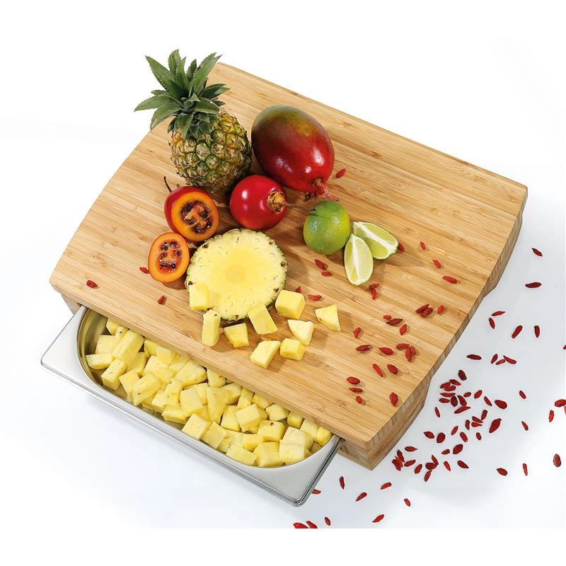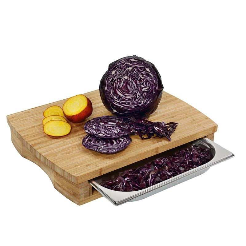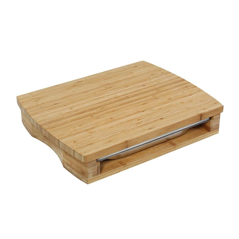 Bambusowa deska do krojenia z wysuwaną tacką.