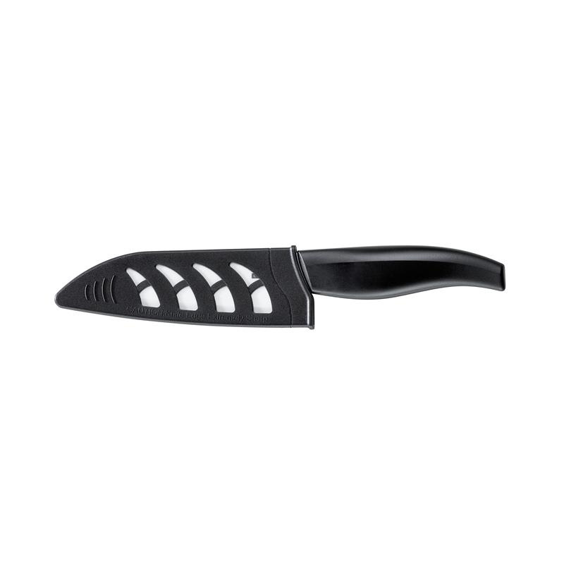 Materiał: : ceramika cyrkonowa i tworzywo sztuczne Długość ostrza: 14 cm Nóż może być myty w zmywarce.