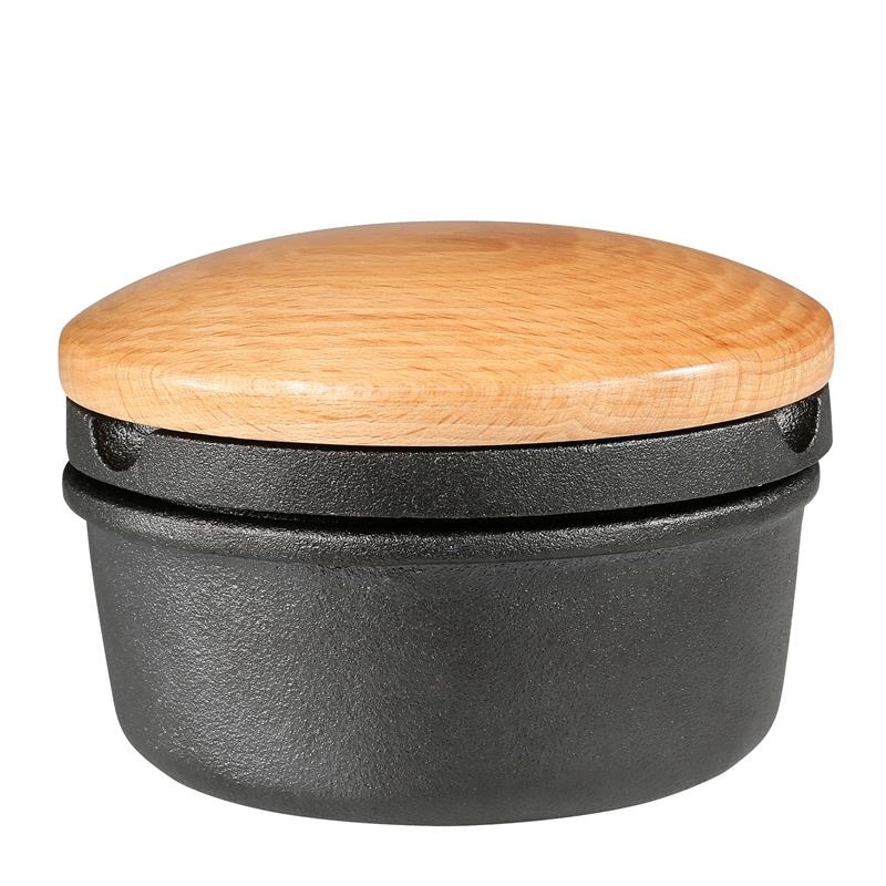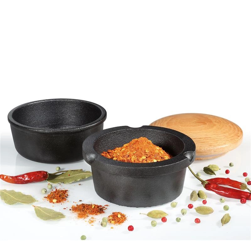 Zassenhaus - żeliwny moździerz z bukową pokrywą, śred. 11 x 7 cm, 1,5 kg