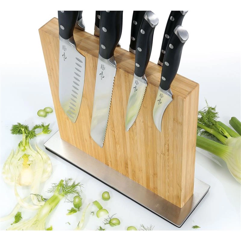 - noże są przechowywane bez ryzyka skalecznia czy stępienia ostrza, a jednocześnie są wyeksponowane
