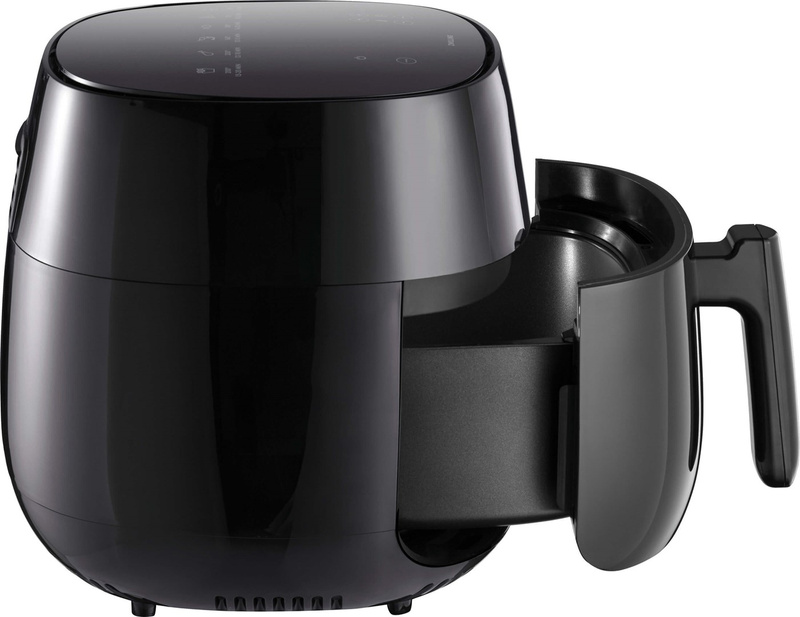 Na ekranie dotykowym LED można wybrać sześć wstępnie zdefiniowanych programów dla frytek, kurczaka, krewetek, ryb, pizzy i ciasta. Temperatura i czas mogą być również ustawione indywidualnie. Załączona książka z przepisami dostarcza więcej pysznych pomysłów, które można wypróbować od razu we frytkownicy. Po upływie wybranego czasu rozlega się sygnał dźwiękowy i frytkownica kończy automatycznie proces przygotowywania potraw. Dzięki pojemności 4 litrów, w koszu jest wystarczająco dużo miejsca na większe porcje. Powlekany kosz i ruszt nadają się do mycia w zmywarce. Dzięki frytkownicy nie trzeba pozbywać się zużytego tłuszczu, co czyni ją szczególnie praktyczną w codziennym użytkowaniu.