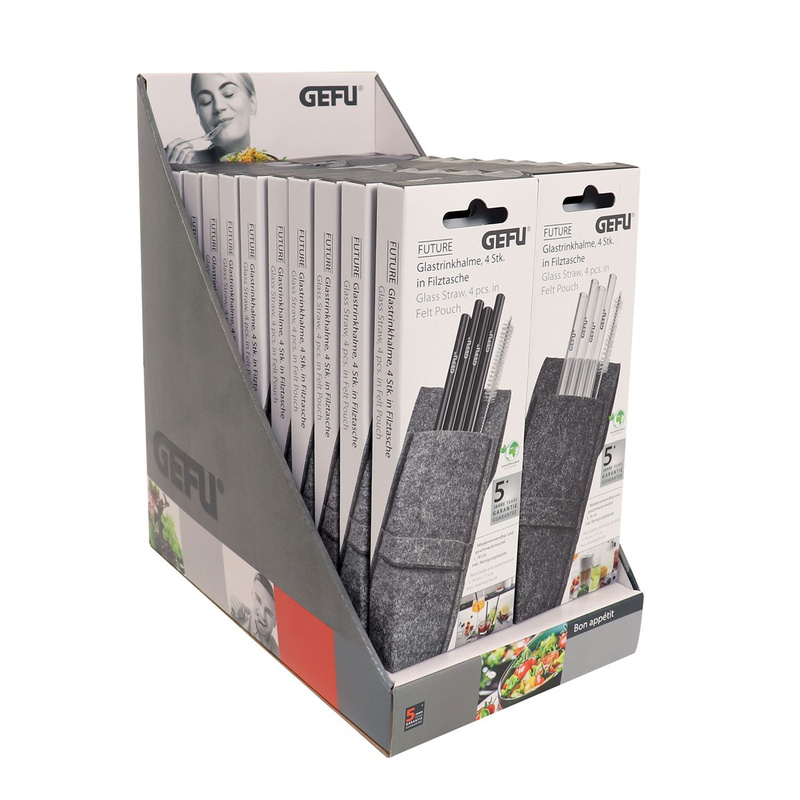 GEFU - display 20x zestaw 4 czarnych słomek 18 cm FUTURE