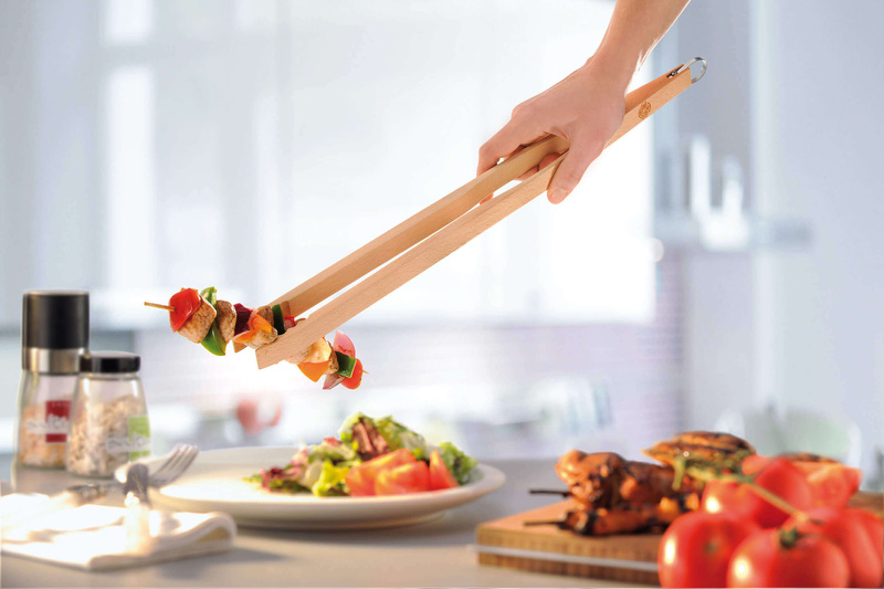 Drewniane szczypce NATURA mają długość 48 cm, dzięki czemu idealnie nadają się do przewracania potraw na grillu. Falowane wykończenie zapewnia dobry, stabilny chwyt. Szczypce możesz przechowywać bezpośrednio przy grillu dzięki praktycznej pętli do zawieszenia. Będziesz mieć je zawsze pod ręką. Przed użyciem zaimpregnuj szczypce oliwą z oliwek, aby chronić je przed marynatami, tłuszczem mięsnym itp.
