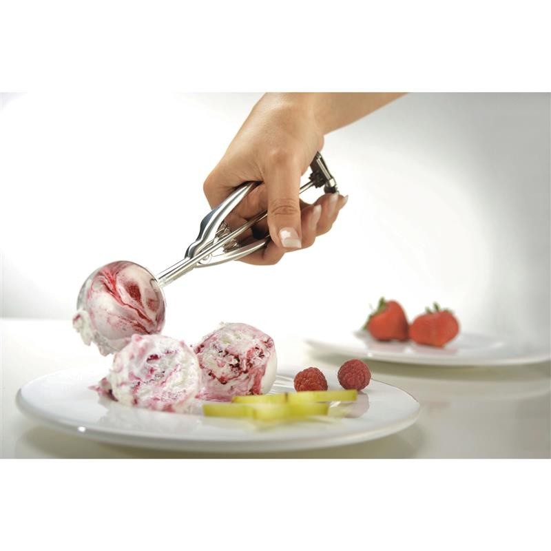 Przygotowanie idealnego deseru lodowego w upalne dni nie musi być trudne dzięki łyżce do lodów GEPALINA. Ta wyjątkowa łyżka do nakładania lodów została wyposażona w funkcję prostego wyjmowania gałki lodów, co ułatwia serwowanie i zapobiega rozpuszczeniu deseru. Dzięki niej łatwo i precyzyjnie nałożysz ulubione lody do pucharków lub miseczek, co z pewnością zrobi wrażenie na Twoich gościach.
