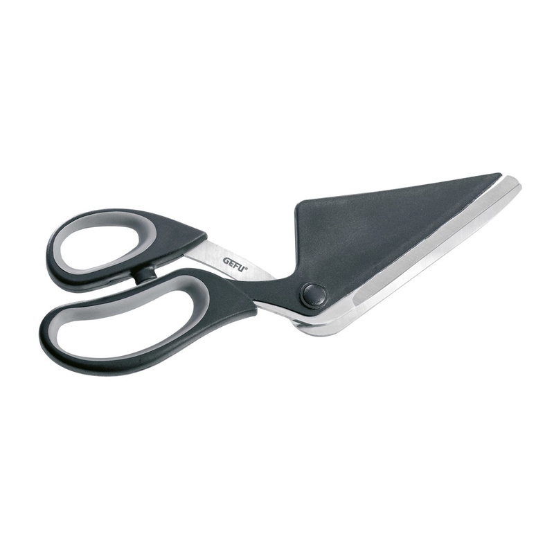Dwufunkcyjne nożyce do krojenia i serwowania pizzy. Podawaj ucięty przez siebie kawałek za pomocą zintegrowanej szpatułki.