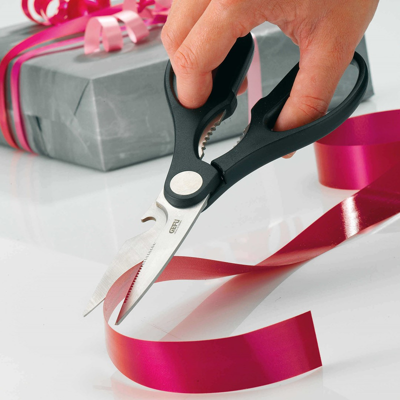 Gadżet idealny dla tych, którzy cenią sobie wielofunkcyjność i nie lubią nadmiaru przyrządów kuchennych! Wielofunkcyjne nożyce UNA możesz wykorzystać do cięcia, otwierania butelek, a także odkręcania kapsli o średnicy do 3 cm. Ergonomiczna budowa gwarantuje, że nożyce będą wygodnie leżały w dłoni. Konstrukcje nożyc wykonano z najwyżej jakości stali nierdzewnej, która gwarantuje ich trwałość i solidność. Dzięki nim zaoszczędzisz miejsce w szafkach.