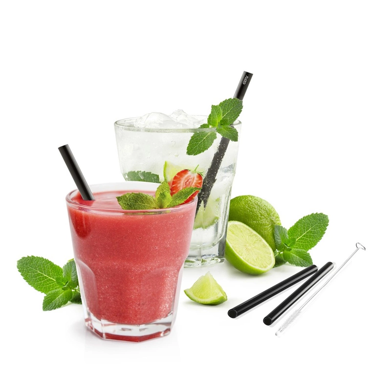 Ekologiczna, neutralna smakowo alternatywa dla jednorazowych, plastikowych słomek. Prezentują się bardzo efektownie zarówno w towarzystwie zimnych, ale i gorących napojów. Wykonane z najwyższej jakości, czarnego szkła borokrzemowego, dzięki czemu nie pozostawiają metalicznego posmaku. Są wielorazowe i możesz myć je w zmywarce.