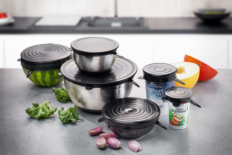 - 6 bardzo elastycznych silikonowych pokrywek do okrągłych pojemników, owoców i warzyw