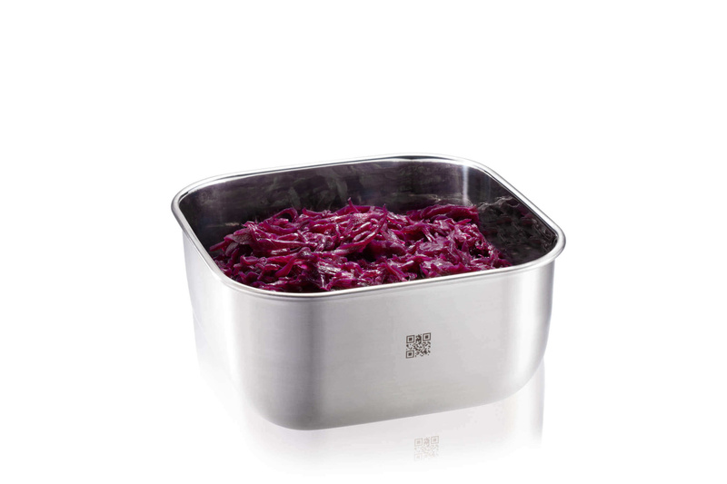 Ponadczasowy, elegancki pojemnik do przechowywania żywności. PROVIDO wprowadzi porządek do Twojej lodówki i zamrażarki. Pojemnik w zestawie ze szczelną pokrywką, zatrzymującą wszelkie aromaty i płyny. Został wykonany z wysokiej jakości stali nierdzewnej, a pokrywka z tworzywa sztucznego. Pudełko odporne jest na temperaturę do 300°C (bez pokrywki). Potrawy można przechowywać w zamrażarce do temperatury