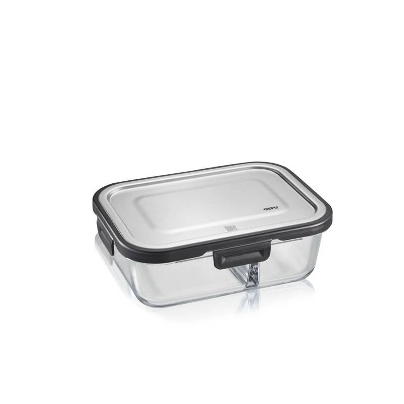 - pojemnik z wysokiej jakości szkła borokrzemowego z pokrywką ze stali nierdzewnej