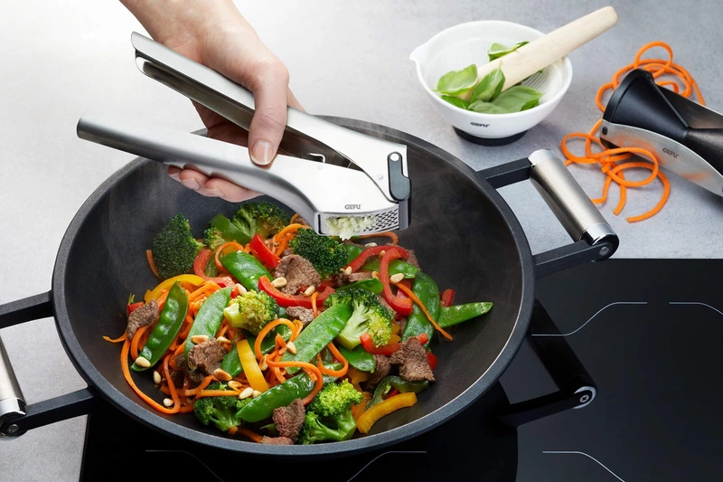 Z wyciskaczem GARLICO szybko zamienisz czosnek w smaczną przyprawę do ulubionych dań. Doskonale poradzi sobie nawet z nieobranymi ząbkami. Jego ergonomiczna konstrukcja ułatwia wyciskanie czosnku a dzięki zintegrowanemu skrobakowi zużywasz ząbki w całości. Wyciskacz bardzo łatwo utrzymać w czystości przez wyjmowane sitko i możliwość mycia w zmywarce.