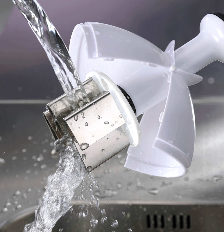 Dokładnie posiekane zioła? Z szatkownicą TRITTORE nie jest to problem, zapewniają to bardzo ostre stalowe ostrza. Nadaje się również do siekania warzyw. Szatkownica wyposażona jest w boczną skrobaczkę, która zgarnia osadzające się na ściankach produkty. Dodatkowo posiada antypoślizgową podstawę.