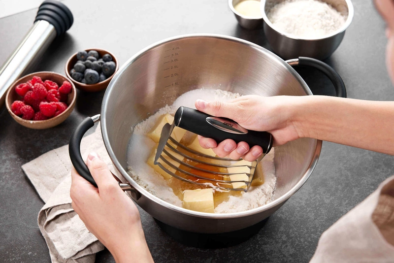 Siekacz BATEDO stworzy idealną kruszonkę i kruche ciasto łatwo i szybko jak nigdy wcześniej. Opracowany przez doświadczonego profesjonalistę w dziedzinie pieczenia. Równomiernie wymieszasz nim masło i jajka ze wszystkimi suchymi składnikami, takimi jak mąka, cukier i proszek do pieczenia.