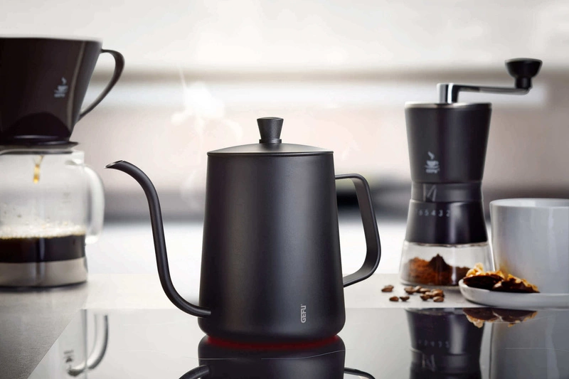 Ten praktyczny dzbanek z tzw gęsią szyjką docenia szczególnie miłośnicy kawy. Rewelacyjnie sprawdza się do zalewania kawy w filtrze typu dripper, ale i do zalweania herbaty i ziół woda w odpowiedniej temperaturze.