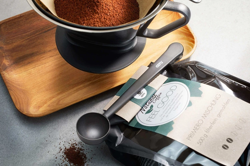 Praktyczna łyżeczka do kawy z podwójną funkcją: miarka CLIPPO umożliwia perfekcyjne dozowanie mielonej kawy, a zintegrowany klips służy do wygodnego zamykania opakowań kawy. Dzięki temu każda filiżanka zawsze smakuje tak jak należy, a kawa pozostaje dłużej świeża.