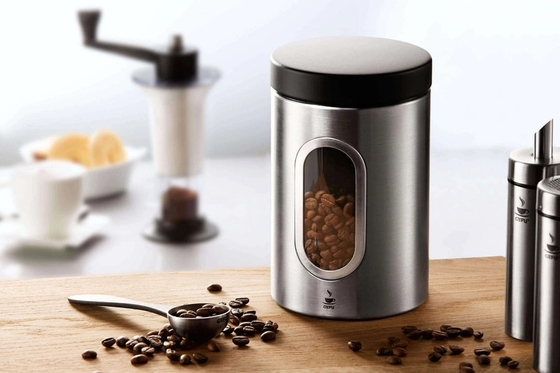 Czy szukasz sposobu na idealne przechowywanie swojej kawy ziarnistej lub świeżo zmielonej? Jeśli tak, to pojemnik na kawę PIERO wykonany ze stali nierdzewnej z zamknięciem typu „klik” jest dla Ciebie idealny. Dzięki niemu możesz zachować wszystkie aromaty ulubionej kawy. Okienko umożliwia również sprawdzenie poziomu jej zapasów. Pojemnik świetnie sprawdzi się również do przechowywania herbaty liściastej.