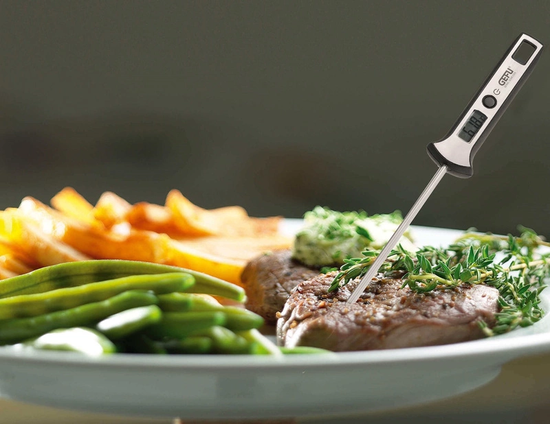 - 49°F do 392°F. W zestawie znajduje się bateria alkaliczna, a sonda wykonana jest z wysokiej jakości stali nierdzewnej, zabezpieczona silikonowym kapturkiem ochronnym. Termometr wykonany jest z wysokiej jakości stali nierdzewnej oraz ABS, a na produkt udzielana jest 5- letnia gwarancja. Wymiary: Długość: 20,5 cm Szerokość: 1,5 cm