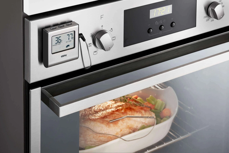 - nic nie może pójść nie tak. Termometr posiada magnes, który ułatwia zamocowanie go do kuchenki oraz podstawkę, która umożliwia postawienie go w dowolnym miejscu. Dodatkowo posiada funkcję minutnika do 99 godzin i 59 minut.