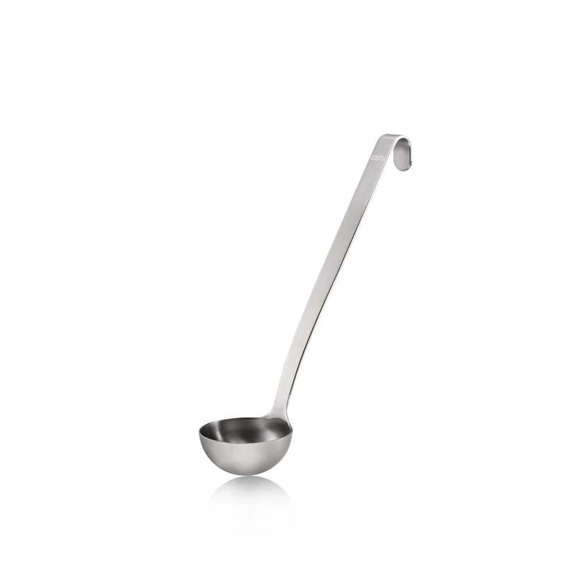 Praktyczna seria przyrządów kuchennych BASELINE doskonale sprawdzi się podczas codziennych, kuchennych obowiązków. Praktyczne, solidne, trwałe i niezastąpione, takie są właśnie wszystkie należące do niej akcesoria. W tej kolekcji postawiono na prostotę, konstrukcja akcesorii ograniczona jest do absolutnego minimum. Chochla wykonana z wysokiej jakości stali nierdzewnej o średnicy 7 cm. Wyposażona w praktyczne zagięcie, które umożliwia powieszenie na kuchennym relingu.