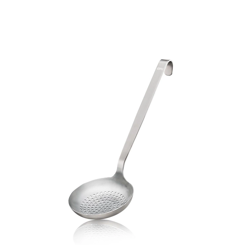 Praktyczna seria przyrządów kuchennych BASELINE doskonale sprawdzi się podczas codziennych, kuchennych obowiązków. Praktyczne, solidne, trwałe i niezastąpione, takie są właśnie wszystkie należące do niej akcesoria. W tej kolekcji postawiono na prostotę, konstrukcja akcesorii ograniczona jest do absolutnego minimum. Łyżka cedzakowa wykonana z wysokiej jakości stali nierdzewnej. Zakrzywiona w górę krawędź ułatwia wyciąganie pierogów i innych produktów z gotującej się wody. Wyposażona w praktyczne zagięcie, które umożliwia powieszenie na kuchennym relingu.