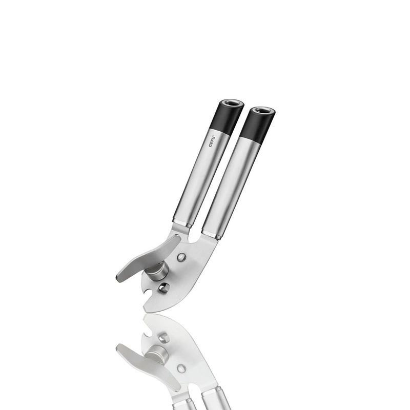 Otwieracz do konserw PRIMELINE wykonany został z wysokiej jakości stali nierdzewnej. Posiada wygodny, wyprofilowany uchwyt, dzięki czemu korzystanie z niego jest bardzo komfortowe. Jest to wszechstronny, praktyczny przyrząd wyposażony w hartowany mechanizm tnący do łatwego otwierania puszek. Każdy produkt z tej serii posiada specjalne oczko do zawieszenia, które wraz z dostępnymi haczykami (29251) umożliwia zawieszenie go na relingu kuchennym (29250).