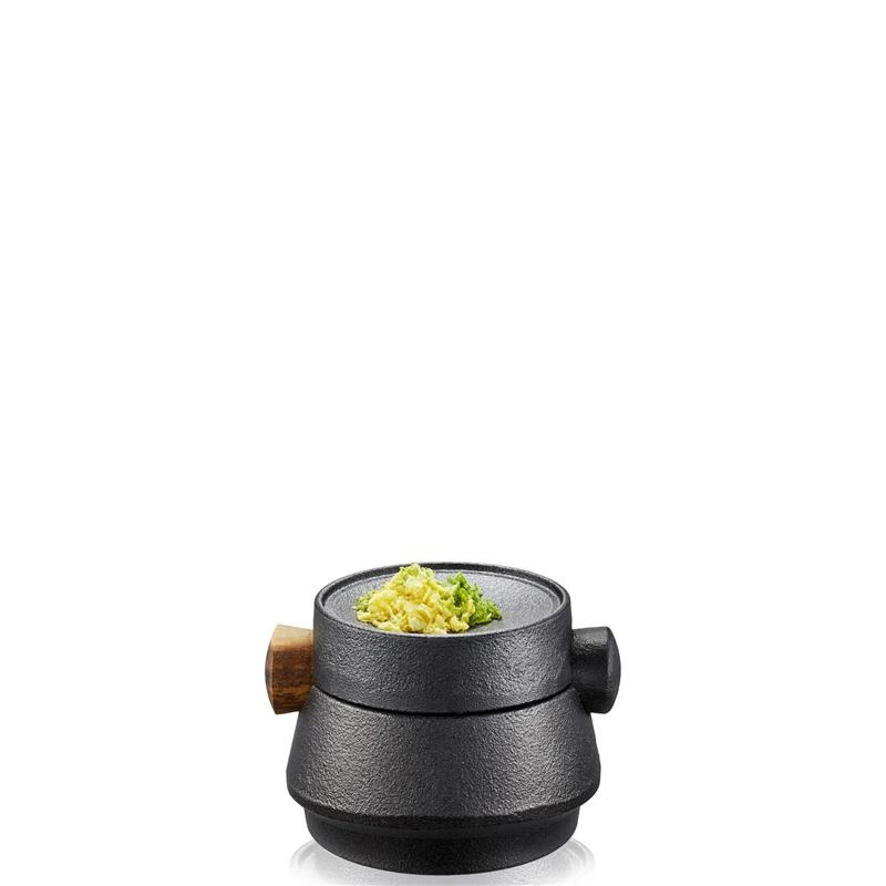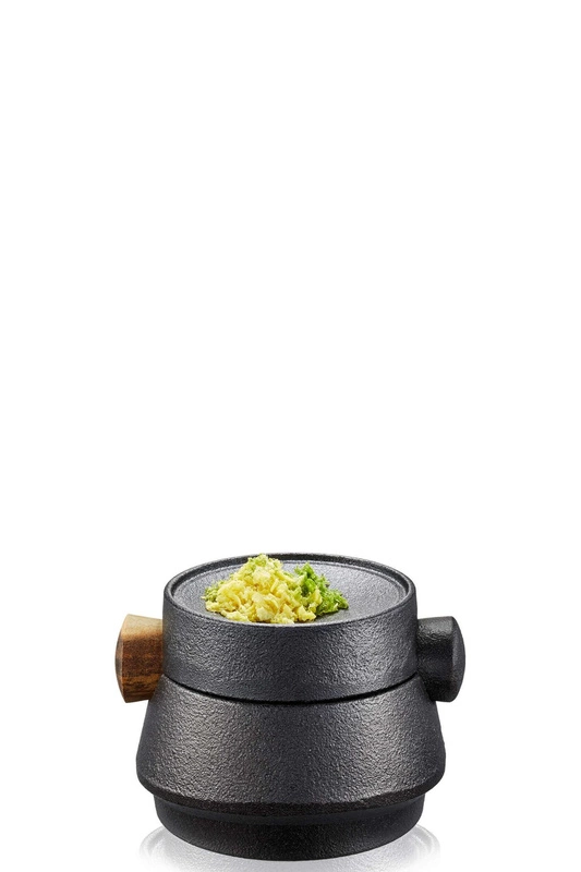 - żeliwny tłuczek z uchwytem z drewna akacjowego
