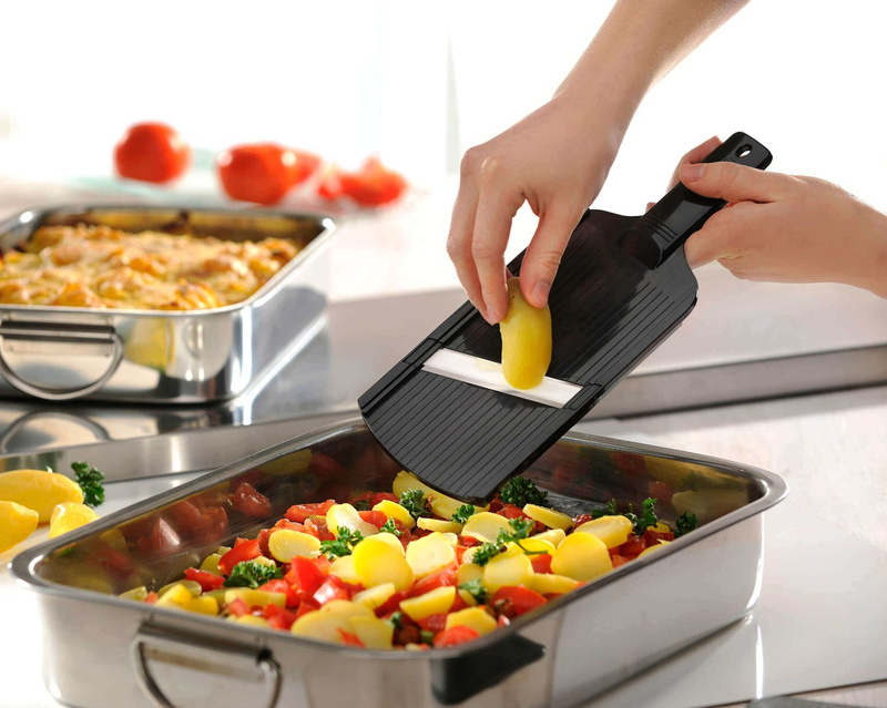 Ceramiczna szatkownica TALIO to must have w twojej w kuchni! Nie ma niczego, czego nie dałaby radę pokroić na perfekcyjne plasterki o grubości 1 mm. Ostrze to jest antyalergiczne i higieniczne i nie wchodzi w reakcję z kwaśnymi produktami. Co więcej, szatkownica posiada specjalną osłonę na palce, która pozwala na szybszą pracę i zwiększa bezpieczeństwo, chroniąc przed skaleczeniami. Bez względu na to, czy przygotowujesz sałatkę czy dodatki do obiadu, szatkownica TALIO z łatwością sprosta Twoim wymaganiom!