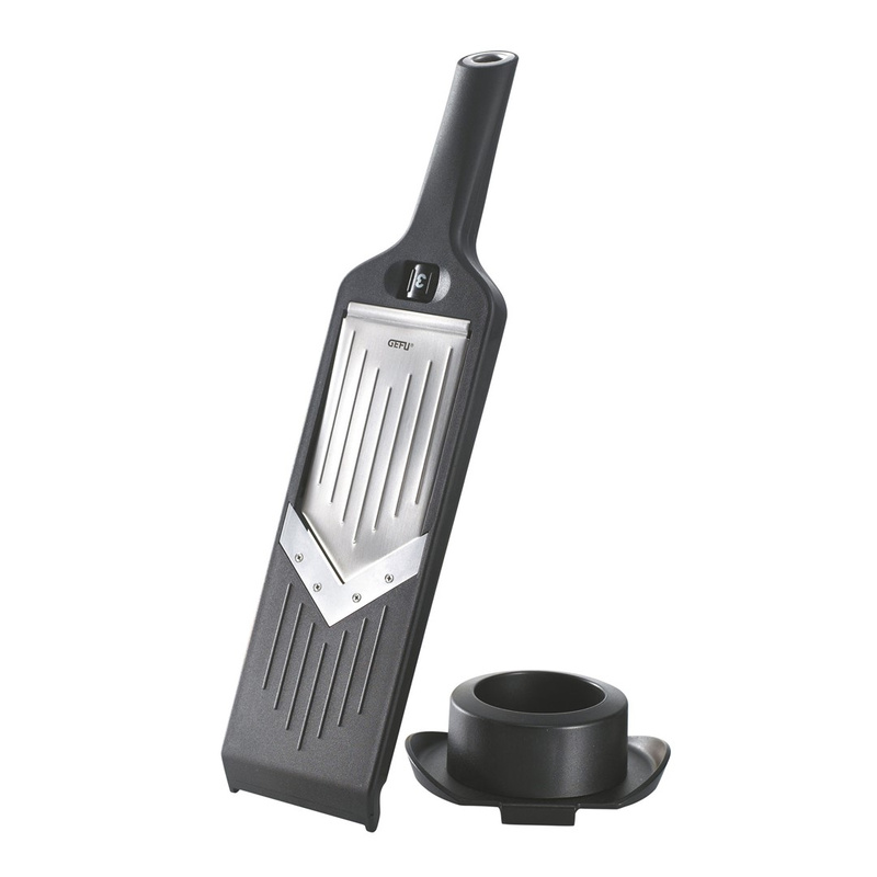 Poręczna krajalnica do warzyw VIOLI® z pięcioma łatwo regulowanymi grubościami plastrów, od 1 mm do 5 mm. Idealny partner w kuchni. Bezpieczeństwo użytkowania zapewnia kompaktowy uchwyt z ochroną na palce. Szatkownica jest stabilna dzięki antypoślizgowej silikonowej powłoce, a ostrza ze stali japońskiej zapewniają solidne cięcie.