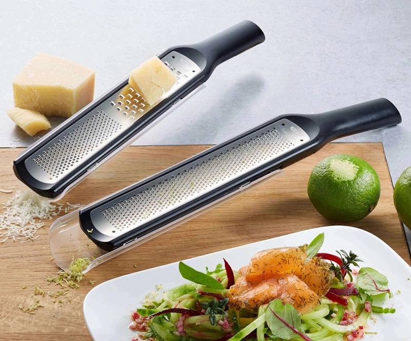 Jeśli szukasz narzędzia, które pozwoli Ci szybko i precyzyjnie obrać twardy parmezan, imbir, gałkę muszkatołową czy skórkę z cytryny, to nasza tarka ręczna RAFINO o drobnych oczkach jest idealnym wyborem. Wklęsła powierzchnia zapewnia wydajne i dokładne ścieranie, dzięki czemu oszczędzisz czas i siły.