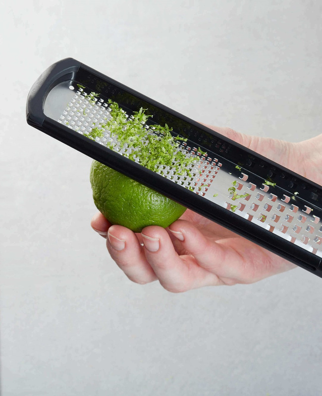 Wielofunkcyjna tarka RAFINO to narzędzie, którego potrzebujesz w swojej kuchni. Dzięki dwóm powierzchniom ścierania w mgnieniu oka zamienisz twarde produkty spożywcze, takie jak parmezan, imbir, czekoladę czy skórkę z cytryny, w delikatne płatki lub drobne wiórki. Wklęsła powierzchnia zapewnia wydajne i szybkie ścieranie. Dodatkowo, antypoślizgowa podstawa i ergonomiczny uchwyt tarki zapewniają bezpieczeństwo jej użytkowania.