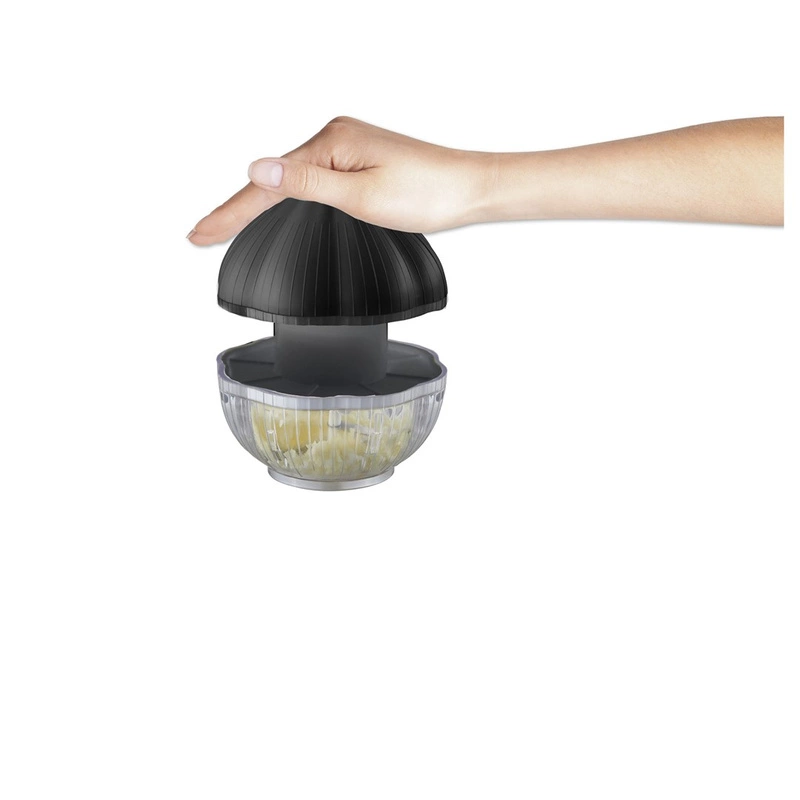 Siekacz do czosnku AGLIOLI wyposażony został w mechanizm obrotowy, który porusza stalowymi ostrzami pod wpływem naciskania pokrywki. Posiada również antypoślizgową podstawę orz pozwala na siekanie kilku ząbków czosnku naraz.