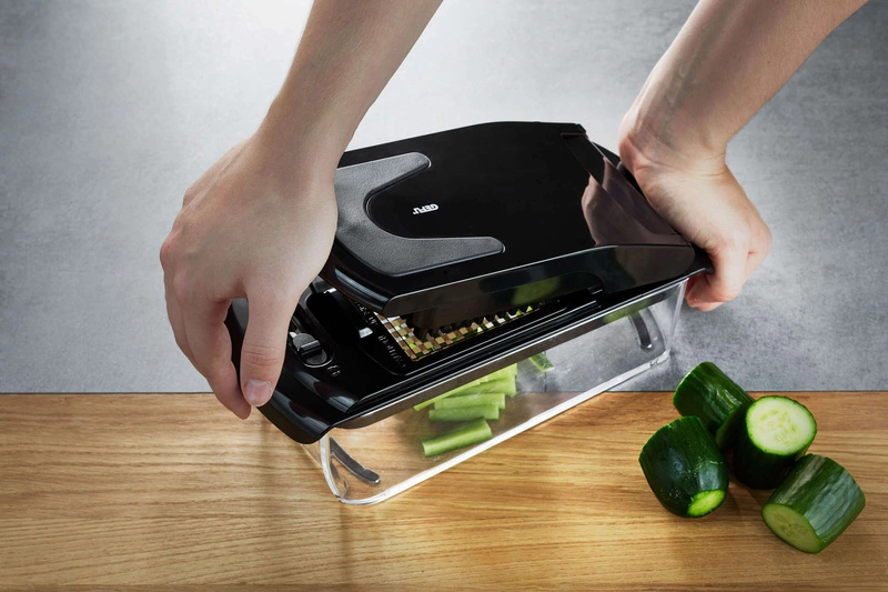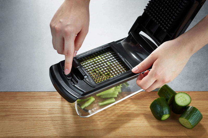 Nie ma prostszego sposobu na przekształcenie owoców i warzyw w kolorową kostkę. Dzięki krajalnicy TREPPO szybko i bezpiecznie przygotujesz składniki na sałatkę, ziemniaki lub różnego rodzaju sery. Wyposażona jest w dwa sitka do cięcia mniejszej (7x7mm) i większej (13x13mm) kostki.