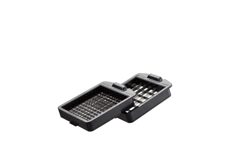 - 2 wymienne ostrza do drobnej (7 x 7 mm) i grubszej (13 x 13 mm) kostki