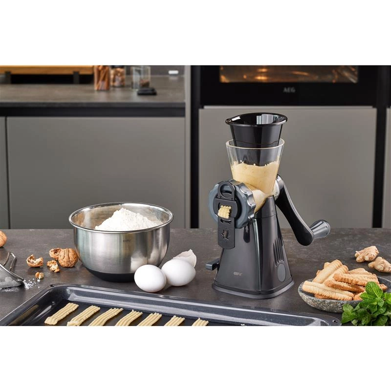 Maszynka do mięsa METO jest bardziej uniwersalna niż myślisz. Oprócz zmielenia mięsa możesz jej użyć do zrobienia domowych kiełbasek lub fantazyjnych ciasteczek. Solidna konstrukcja z samoostrzącymi się ostrzami ze stali nierdzewnej. Posiada antypoślizgową przyssawkę, przez co jest stabilna podczas pracy.
