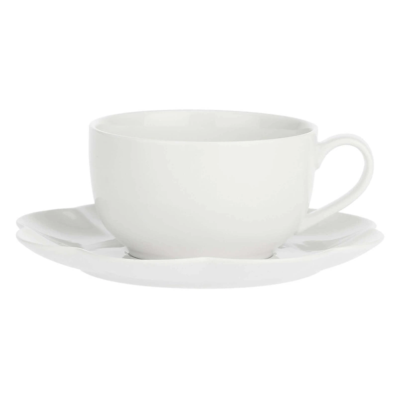 Filiżanka ze spodkiem w kształcie kwiatka uprzyjemni spożywanie ulubionej kawy czy herbaty i sprawi, że codzienny rytuał stanie się wyjątkowym doznaniem. Najwyższej jakości biała porcelana będzie ozdobą twojej kolekcji naczyń.