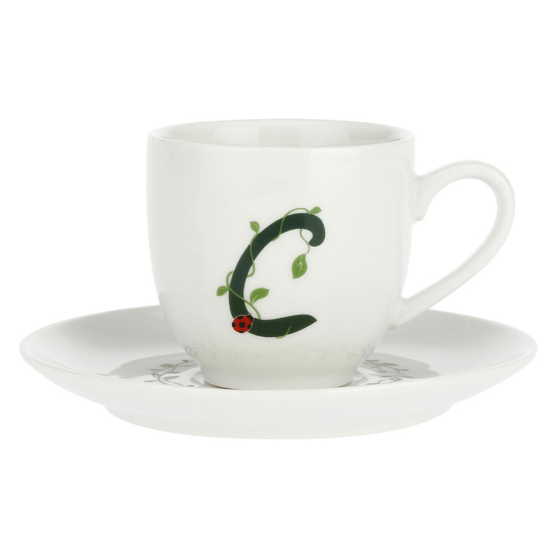 Kompletujesz swoją zastawę stołową i szukasz do niej niebagatelnych dodatków? Filiżanki do kawy i herbaty zdobione zielonymi literami alfabetu i roślinnym motywem ożywią każdy, nawet najprostszy serwis obiadowy! W zestawie z filiżanką otrzymasz także talerzyk z motywem liści bluszczu, który dopełni Twoją kolekcję!