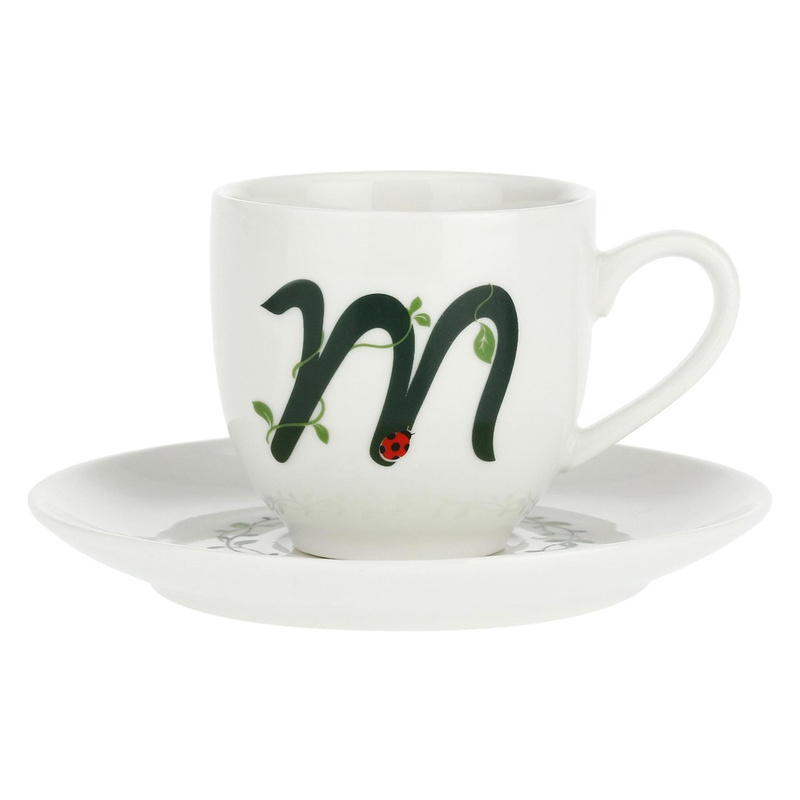Kompletujesz swoją zastawę stołową i szukasz do niej niebagatelnych dodatków? Filiżanki do kawy i herbaty zdobione zielonymi literami alfabetu i roślinnym motywem ożywią każdy, nawet najprostszy serwis obiadowy! W zestawie z filiżanką otrzymasz także talerzyk z motywem liści bluszczu, który dopełni Twoją kolekcję!