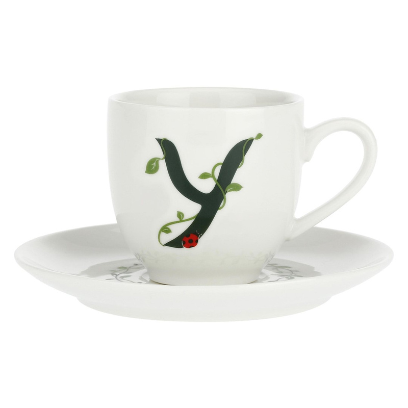 Kompletujesz swoją zastawę stołową i szukasz do niej niebagatelnych dodatków? Filiżanki do kawy i herbaty zdobione zielonymi literami alfabetu i roślinnym motywem ożywią każdy, nawet najprostszy serwis obiadowy! W zestawie z filiżanką otrzymasz także talerzyk z motywem liści bluszczu, który dopełni Twoją kolekcję!